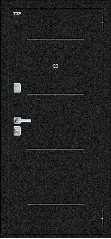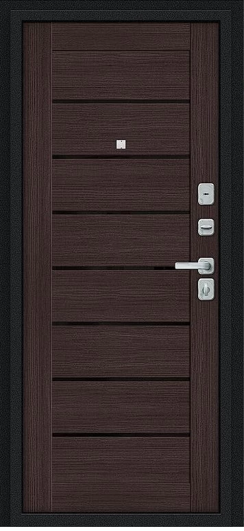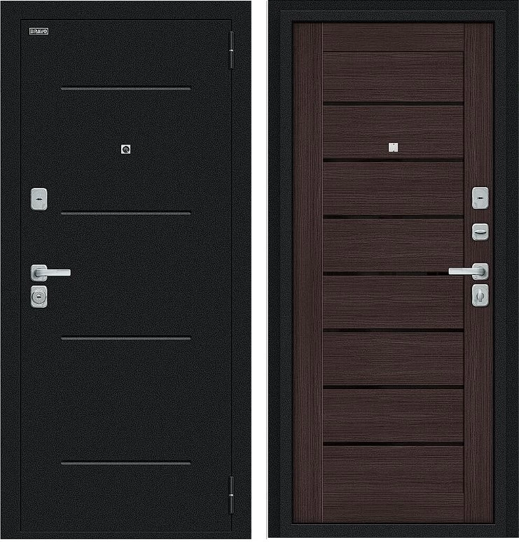 Надежная входная Дверь Браво Техно/BChrome Букле черное/Wenge Melinga премиум класса по цене 37 747 руб. Большая толщина стали защитит от проникновения в ваш дом, квартиру или коттедж. Используется очень качественная фурнитура: замки, цилиндры, ручки, защелки. Покрытие и отделка двери изготовлено под внимательным контролем производителя. Дверь имеет долгий срок службы и гарантию.